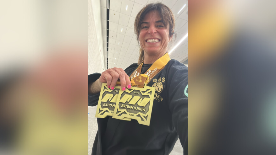 Patrícia Lage lutou no Mundial Master de jiu-jitsu nesta sexta (30) e pegou o bronze na categoria Master 4, peso leve, e no absoluto. “Passei por uma cirurgia de quadril no final do ano passado. Demorei um pouco mais para ficar 100% e voltar a treinar. Nos últimos meses, ainda tive lesão nos dois pulsos. O master exige muito do corpo”.